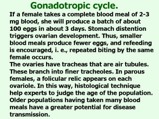 Females can feed again on the same day they oviposited. Most ovipositions occur in the late afternoon in containers with hard walls. The eggs are fastened there just above the water level. Usually, eggs from one batch are distributed in several containers.