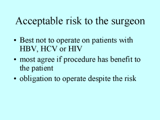 On the other hand the surgeon is obligated to operate despite the risk to himself. This is true of all physicians who are required to treat patients if there is potential benefit despite the risk. |