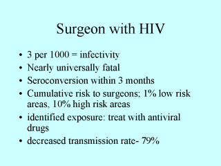 The infectivity of HIV is less than that for HBV and for HCV, but is nearly universally fatal. The risk is also lower but substantial. If exposed then treatment should be instituted with antiviral drugs which decreases infectivity by 79%. |