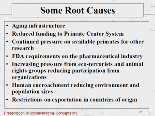 Increasing difficulty in animal transportation - Modes (commercial airlines, ground) - Regulatory issues (IATA) - Politics (Interim Guidelines, CDC; pressure on carriers) |