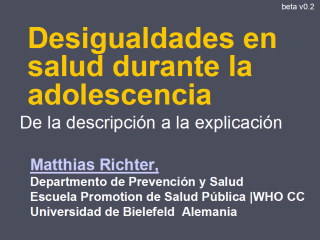 | Traducción de la conferencia Helath Inequalities in Adolescence, realizada por el Dr. Nicolás Padilla, Facultad de Enfermería de Celaya, Universidad de Guanajuato, México |