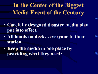 • Food, coffee, sun block, bathrooms, tents, electricity, phone lines