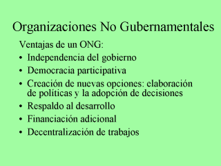 Las organizaciones estudiantiles para le desarrollo comunitario presenta características de las organizaciones no gubernamentales y por tanto ofrece sus ventajas. Con la idea de