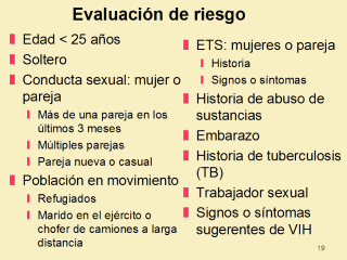 infección por VIH es baja, la evaluación de riesgo ayuda a determinar quién