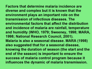 In next slides the relationship of rainfall, temperature and humidity with malaria incidence will be discussed in more detail.