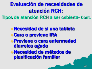 aguda respiratoria. Respecto de estos puntos, se necesita el posible número de mujeres embarazadas para tabletas EFA, posible número de infantes que pueden necesitar medicamentos para IRA y diarrea. Deberán estimarse el número de mujeres a ser esterilizadas, mujeres a quienes se les aplicará el DIU, mujeres que consumitrán anticonceptivos orales, y hombres que necesitarán condones para planificación familiar. |