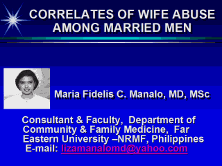 The association of marital factors, social-psychological factors, social-structural factors and social-location factors to wife abuse was examined. Readings: Martin SL, Tsui AO, Maitra K, Marinshaw R. Domestic