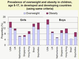 overweight and countries except Seychelles: Cole, BMJ 2000;320:1240 Data for Seychelles: Stettler et al. Int J Obes 2002;26:214-19. |