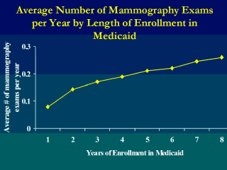 Women 40-64 years of age, with no participation in Managed Care programs, Medicare or spenddown, and no stay in nursing homes.