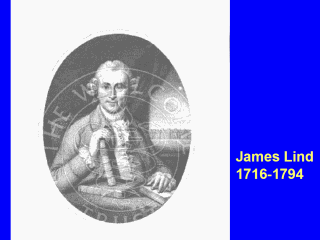 James Lind (1716-1794) was born and educated in Edinburgh. He was apprenticed to a surgeon when he was 15, and spent nine years as a naval surgeon, during which time he saw many cases of scurvy, a disease that disabled and often killed sailors on long ocean voyages. Lind thought this disease might be caused by a diet lacking fresh fruit and vegetables. He conducted an experiment, giving different diets to each of several pairs of sailors. This was, in fact, the first clinical trial ever conducted – although the sample sizes were very small, there was no random allocation, and no informed consent was obtained from the sailors. The two sailors who received fresh oranges and lemons recovered rapidly from the scurvy, the others did not.