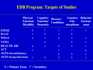 studies. So, for example the focuses of the WHAS are on physical disability and