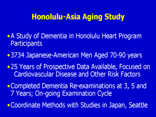 Honolulu-Asia Aging Study (HAAS) The primary goal of HAAS is to provide