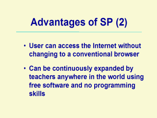Finally, the package has been written so that it can be updated using free software available to anyone with access to the Internet, thus ensuring teachers are not impeded because they cannot afford the costs of more sophisticated software. |