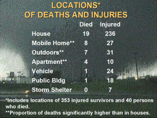 deaths was significantly higher in mobile homes, apartments, and outdoors