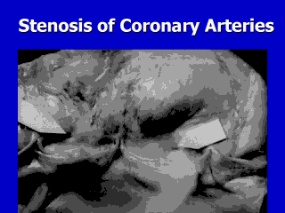| The ostia of the coronary arteries are severely occluded in this case. Cardiovascular syphilis may lead to coronary stenosis and ischemic heart disease, a phenomenon far less common in the antibiotic era. |