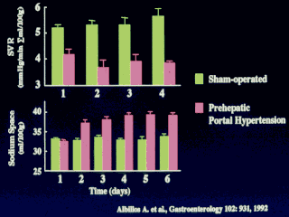 | Temporal Relationship between Decreased Vascular Resistance and Increased Sodium Space with Prehepatic Portal Hypertension vs. Sham-operated Rats |