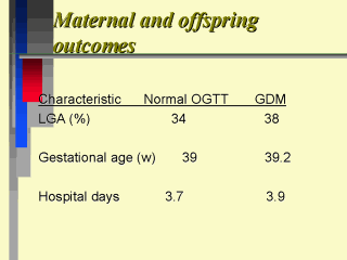 Lucas et al (1993) reported that for selected delivery outcomes, no significant differences were found between GDM and non diabetic women.