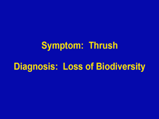 | The fourth condition is the loss of biological diversity, as mass extinctions eradicate species that have walked the earth long before humans emerged. Just as our GI tracts need a spectrum of normal bacteria for healthy functioning, our globe benefits from the amazing diversity of life. As we crowd out other species by our manipulation of the globe, species disappear, irreversibly. |