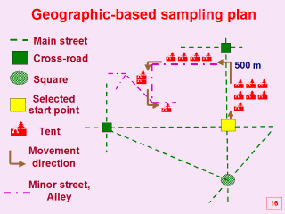 If a group did not complete seven interviews because of lack of sufficient visible tents on the moving path; they turned left to find the nearest tent and completed interviewing with 7 households.