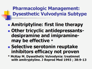 (17) McKay M. Dysesthetic Vulvodynia: treatment with amitryptyline. J Reprod Med 1993 ; 38:9-13
