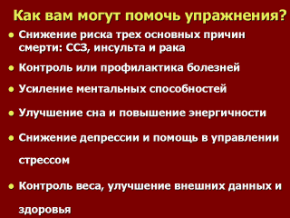 | Хорошая новость - каждый получает пользу здоровью от регулярной физической активности (USDHHS, 1996). |