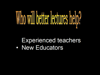 | Experienced teachers are helped in that to prepare a lecture on a new topic from scratch will take 15 hours, using a Supercourse Template lecture, preparation time is less than 5 hours, with much better results. We originally focused our effort to help new educators, who do not have any content, and are nervous about teaching. |