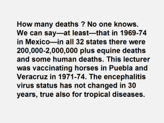 human deaths ? This is the way to save money. Where does such data or allegations come from ??? It is by rumor, guesswork and sometimes by eye witnesses or secondhand witnesses, but not by measurement and record. In the 1970s, correct morbidity and mortality data were UNAVAILABLE in Mexico. The first publication vital statistics in Mexico was issued in 1973. Astoundingly, no human death by VEE was recorded. |
