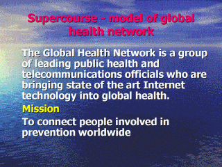We have established a global network of people primarily in academia who are working together to prevent disease. This group is connected on the Internet.