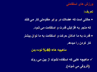 فواید افزایش توده ماهیچه ای بدن § انجام آسانتر کارهای روزانه § کاهش چربی بدن: ماهیچه ها نسبت به چربی ها در حالت استراحت، کالری بیشتری را می سوزانند. § پیشگیری از آسیب ها § پیشگیری و درمان درد کمر Exercise for life by Melissa |