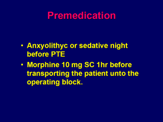 | Usually the premedication of this kind of patients have not any difference and it usually depend of the patient status and the choice of the anesthetist. |