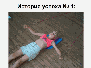 на лицо: уже научилась плавать, рука правая (диагноз: верхний вялый
