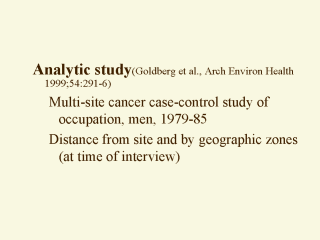 One limitation of both of these designs is that exposure was defined at time of diagnosis; because of the long latency periods for most adult cancers (~15-25 years) this assumption is not valid unless subjects lived in the geographic areas for long periods of time, unless the putative carcinogens acted at a late stage in the development of disease. |