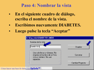 Por eso el programa le pide que nombre también la "vista". Una vista es un grupo de datos (variables) que está dentro de un proyecto. Por ahora vamos a construir un solo proyecto con una sola vista. El proyecto se llama DIABETES y la vista se llama también DIABETES. Al principio esto puede parecer confuso pero verá que rápido se siente cómodo en este programa. |