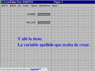 sus dos variables . Una para introducir el nombre de los pacientes y otra para introducir el apellido Pero usted tiene también un número de registro de su consulta o un número de historia clínica. Es buena idea recogerlo. Para ello necesitamos crear un campo (variable) numérico. Veamos cómo se hace. |