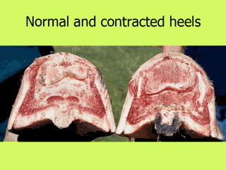 | Contracted heels may result from narrow feet, shoes that are too small and a number of other reasons. Does this abnormal form of the hoof relate to navicular disease? |