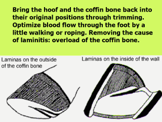 coffin bone attached to the hoof ? Does cure involve reattachment ? The coffin bone gives the hoof its shape, and the rigidity needed to bear weight. It is actually suspended in the hoof, attached by specialized structures called laminas to the inside of the length of the wall. |