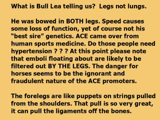 Are standing bandages any good? Is inflammation painful? "They all have to go the same way, son." What this old humped over trainer meant was that he intended to and did break down or get rid of all horses that were not resistant to excercise like Gallant Fox. A horse sent to the claiming races had a better life perhaps than a stake horse. In any case, the paths of glory sometimes lead to the dump. |