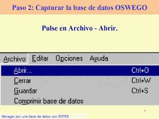 La base de datos OSWEGO ya está creada. Así que le pedimos a GRABAR DATOS que ABRA un archivo.