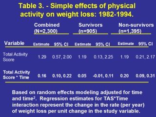 activity to the rate of weight loss in those who did not survive the