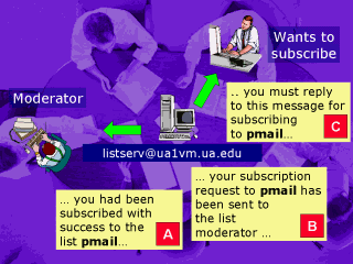 Variant C: the LISTSERVER asks you to send another message as a confirmation (usually replying to LISTSERVER with the word ok). Once your reply is sent, usually follows variant B.