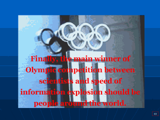Finally the main winner of Olympic competition between scientists and speed of information explosion should be people around the world.