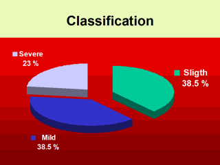 shows patient classification according to OT severity degree. The less