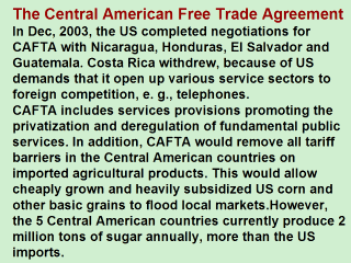 www.oxfamamerica.org/pdfs/cafta_090303.pdf Zapatista rebels had symbolically raided 4 towns in Chiapas in 1994 at the signing of NAFTA which helps the consumer and hurts the farmer. Hunger makes revolution, as everyone knows. The Central American countries are, practically speaking, WITHOUT INDUSTRIAL SKILLS, nor many natural resources. Therefore, emigration is being forced on these people as the only alternative to revolution. Revolution trades new faces for old ones, nothing else. Ripping off the forests is a typical last resort of nomadic overpopulation. Inequalities in land tenure are a real problem. Do Colombian migrants and more from Ecuador enter the jungle trails of Panama? |