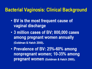 extremely prevalent in the us and world-wide. 2. Although not a reportable condition, 3 million cases of BV diagnosed in the US annually. Although women with BV may experience an odorous discharge or abnormal vaginal bleeding, approximately one-half of cases are asymptomatic and the annual number may exceed 6 million. Higher proportion of BV among women attending STD clinics, low income women and urban women thus need to be aware of the study population when interpreting rates of BV. |