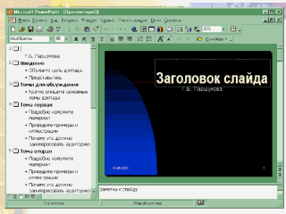Первый слайд презентации, созданной с помощью Мастера Автосодержания выглядит так.