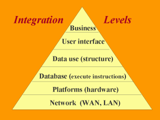 illustrates various potential levels of integration. The foundation is the communications network to ensure full coverage of Public Health Services; this is followed by the hardware for data collections (server); the next step is the execution instructions that drive the operation of the database (reports generated); the next level up is the actual database structure that meets the needs of units (demographic tables); a further integration level is the user interface covering the electronic data transfer (HL7 format for transfer of pathology results); and finally the stage where business operations are facilitated by sharing the common capabilities of systems and units (such as early identification of events, issuing of reminders and sharing of staff skills). Keep in mind that integration of the various data bases needs not be the same across data sets, especially if this implies extra cost for no business benefit. For example, it may make sense to integrate the notifiable disease data set with the vaccinations register. And the breast cancer screening register with the mortality data base. But there may not be benefit in integrating or linking communicable diseases with breast cancer data. It is clear, then, that not all information systems will achieve integration at the business level given their different purposes and operating principles. |