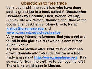 Land tenure has ever been a terrible mess in much of Latin America and the basis of CA revolutions. If your pickup has absorbed small-arms fire, you appreciate this issue. The contention that some free trade act WILL damage the environment might imply that it has NOT yet been greatly damaged, which is juvenile. Ideas and studies like sustainability, biodiversity before-n-after free trade are foolish, because the rampant environmental damage was done long ago. Saving resources that no longer exist seems a trifle difficult ! The joint declaration of Belice, Costa Rica, El Salvador, Guatemala, Honduras, Mexico, Nicaragua and Panama, a community of mesoamerican nations, from Merida, Yucatan, 27 June, 2002 proposed raising the standard of living and developing a sustainable democratic society with respect to human rights and permanent peace. These are good intentions. Such provoked the comment of Robbie Burns, "The best laid plans of mice and men often go awry." Next, we have to face political corruption and disillusionment. |