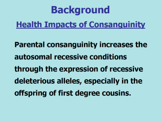 first degree cousins. Among these pediatric disorders: stillbirths and perinatal mortality 11, congenital birth defects, malformations, and mental retardation12.