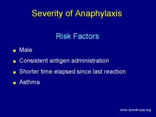 incidence and/or severity of anaphylaxis to radiocontrast media, Hymenoptera