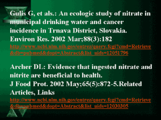 Archer pone de manifiesto las virtudes de los nitritos como elemento antibotulínico en las carnes curadas, y refiere que una parte sustancial del la evidencia epidemiológica en estudios realizados por el programa nacional de toxicología en USA rechaza las sospechas de efectos perjudiciales para la salud.